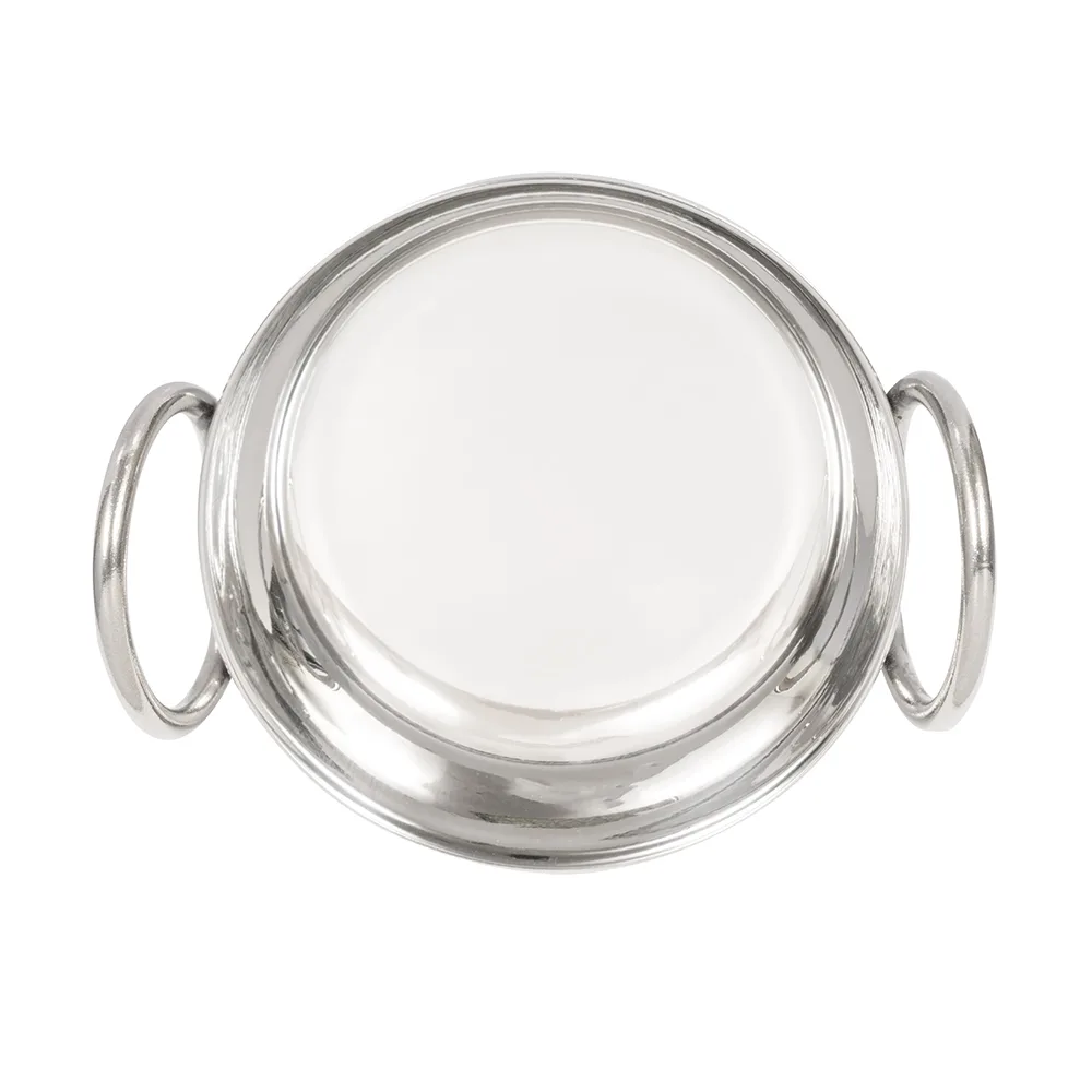 It is made of corrosion-resistant, durable stainless steel with a mirror finish that provides an attractive, upscale presentation. The dish has large loop handles on opposite sides that make it easy to transport and add visual interest to its appearance.