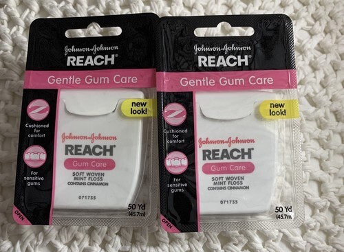 Johnson Johnson Reach Gentle Gum Care Soft Woven Mint Dental Floss Mint 50yd 2pk. New in box. Very rare and hard to find. Discontinued.