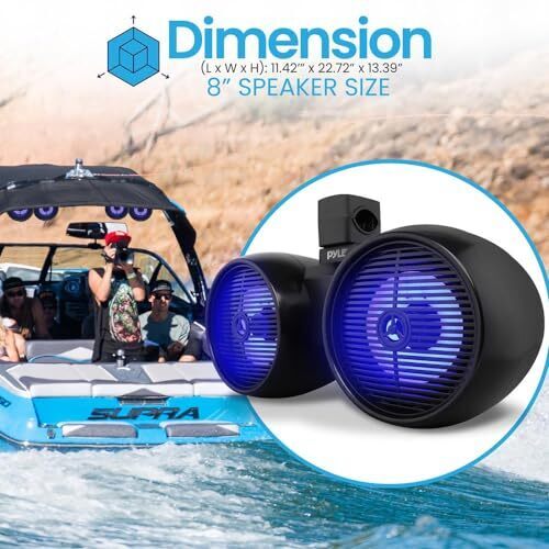 Pyle Dual Waterproof Off-Road Marine Speakers 8" 300W w/ LED Mounting Brackets