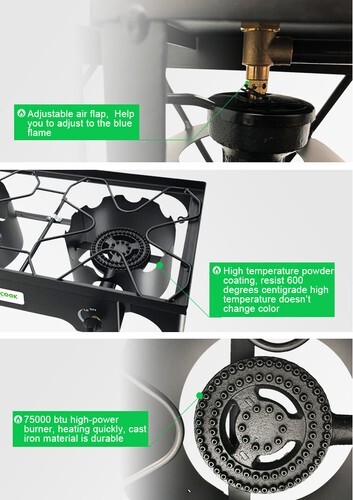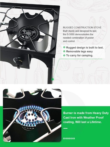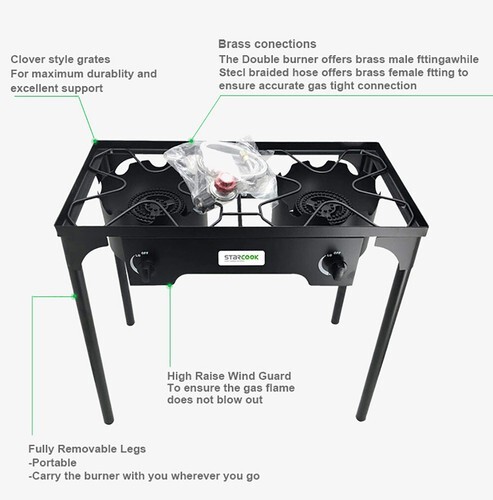 The Cooker Has Two Cast Burners And A 450 Sq. Cooking Surface. Detectable Leg Stand for easy storage.