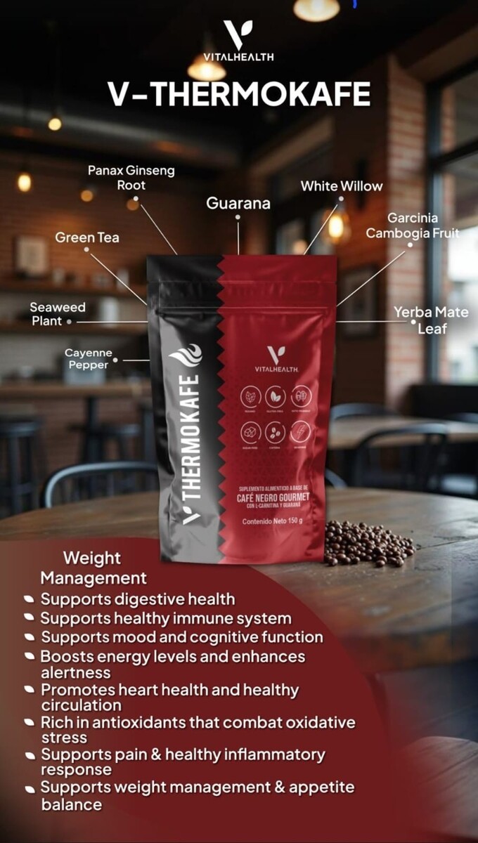 Vital Health V-THERMOKAFE Gourmet Dark Roast Coffee Weightloss Energy