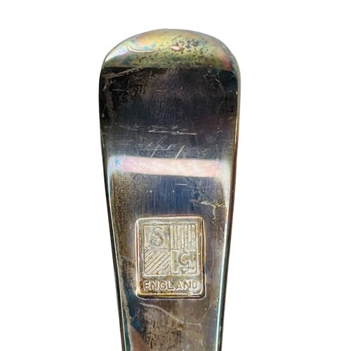 This elegant large serving spoon from K M Sheffield England is perfect for any formal occasion. The silver plated spoon features a glossy finish and a stamped logo design on the handle material. It comes in a box with the company?s signature purple and white cloth cover with emblem for safekeeping and is reusable for many more events to come.