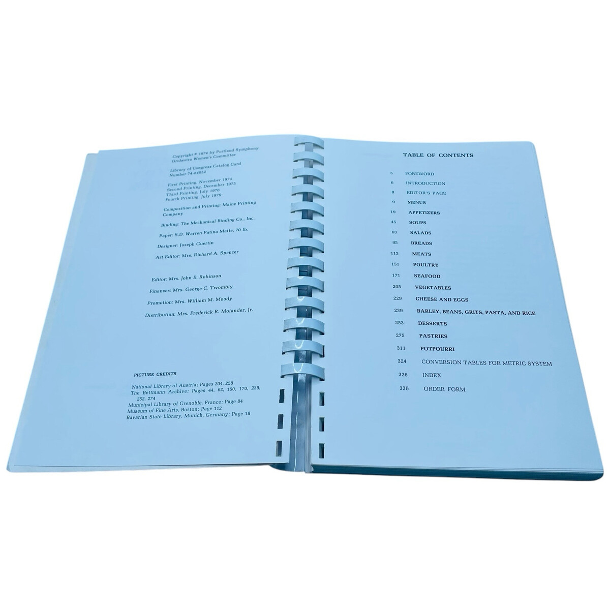 The vintage 1974 "Portland Symphony Cookbook" offers a collection of much-loved New England recipes compiled by the Portland Symphony Orchestra Women's Committee. This first edition cookbook features 334 pages of illustrated recipes, focusing on cooking and baking in the New England region during the 1970s.