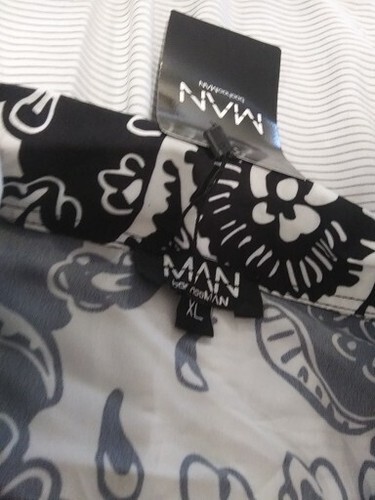 Elevate your casual style with this black and white button-up shirt from Boohoo Man. Made from soft and cool polyester fabric, this relaxed-fit shirt features a paisley pattern, short sleeves, and a cutaway collar. Perfect for any occasion, whether it's for travel, party/cocktail, or casual, this shirt is machine washable and easy to care for.