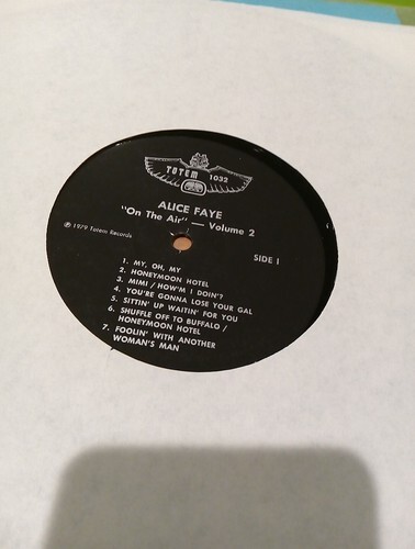 ALICE FAYE "ON THE AIR" VOLUME 2 TOTEM RECORDS TOTEM 1032
