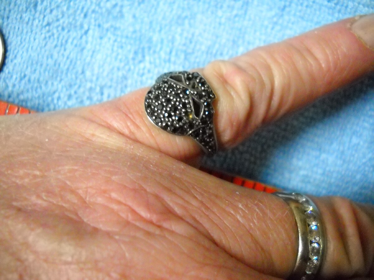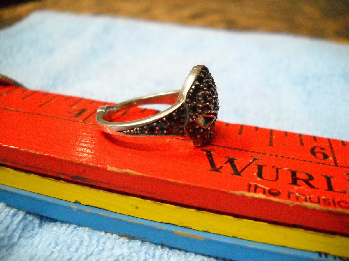 Willie G Davidson Skull 925 Sterling & Onyx ring size 7 3/4 Marked WGD & Trademk