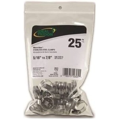 Ideal Tridon 62606 Micro-Gear 5/16" x 7/8" Stainless Steel Hose Clamps, 25-Pack