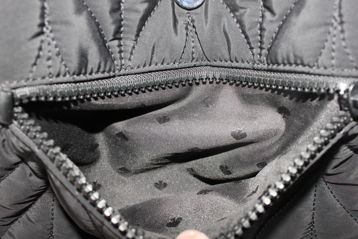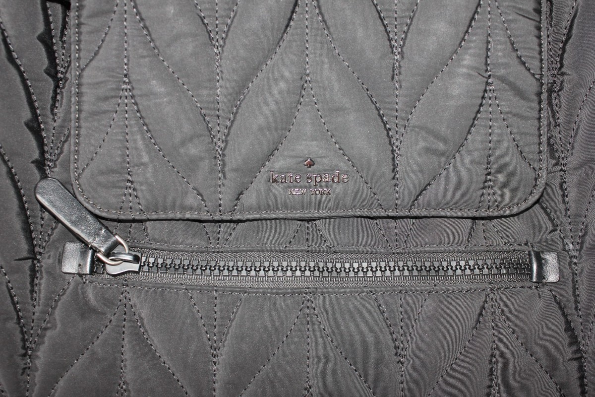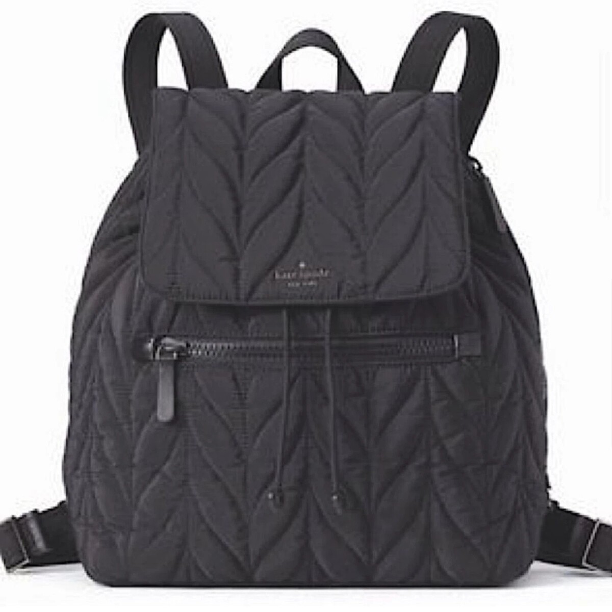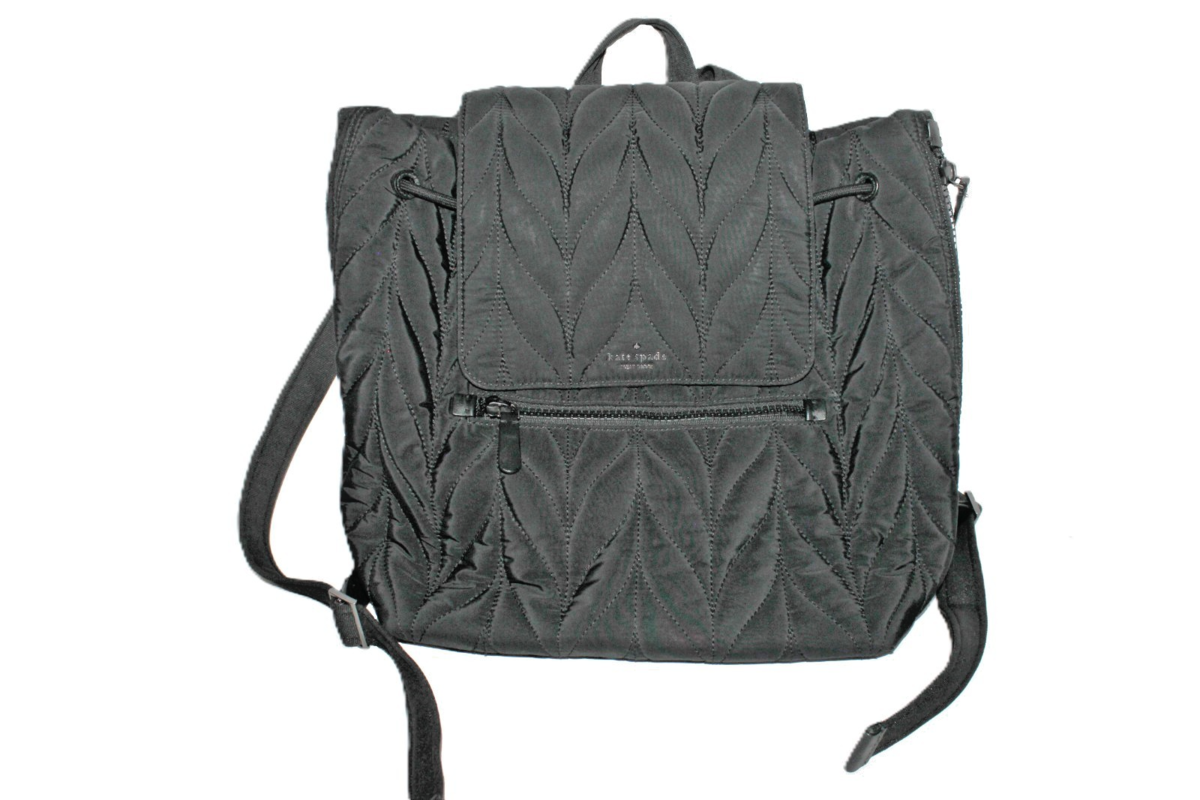 The Kate Spade Large Flap Backpack in Ellie Black Quilted is a stylish and versatile bag perfect for school, work, or travel. With a zip and magnetic closure, black quilted exterior, and silver hardware accents, this large backpack features adjustable shoulder straps and inner and outer pockets for organization. The nylon exterior and stain-resistant fabric lining make it durable and easy to clean, while the designer theme and solid black color add a touch of sophistication to your outfit.
