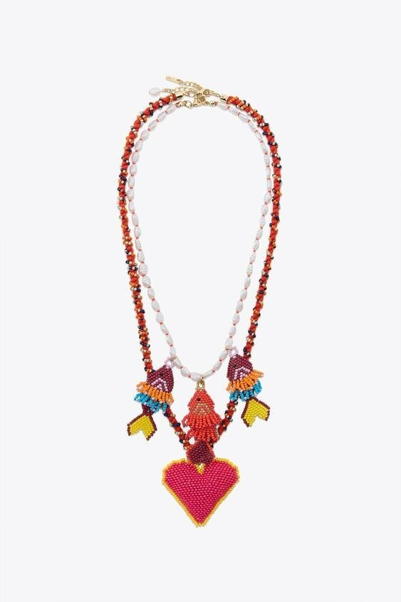 necklace with beads and heart-shaped pendant. Lobster clasp