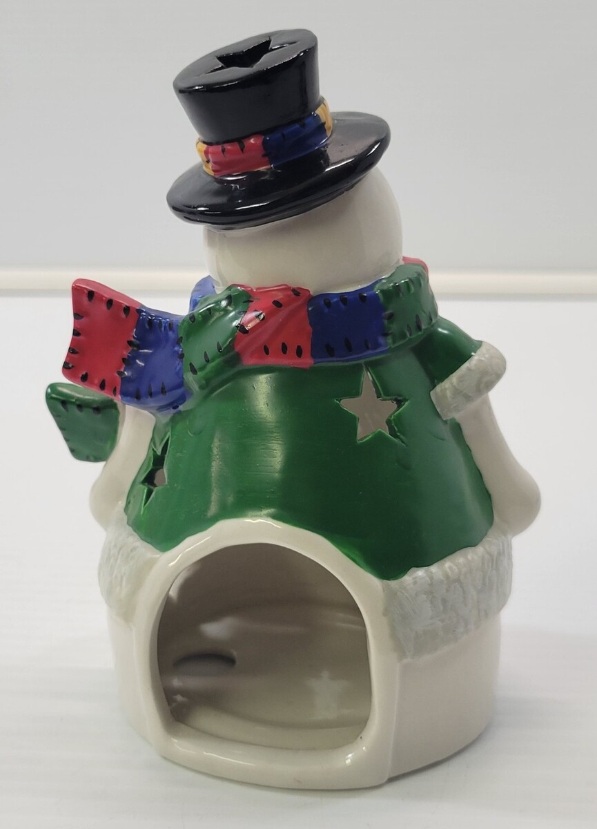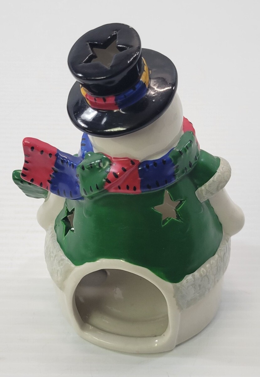 Vintage Ceramic Christmas Snowman Tea Light Candle Holders