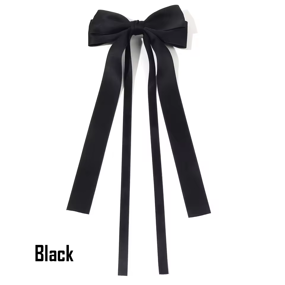 Upgrade your hairstyle with this Ribbon Bowknot Hair Clip For Women Girls, Double Bow Long Tassel Barrette -Black – a trendy and practical hair accessory for women.