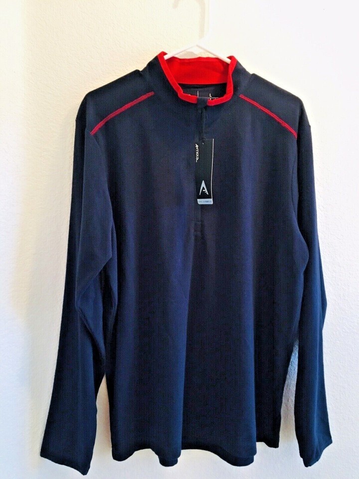 Antigua 1/4 Zip Pullover Performance Top Men's Size L Glacier Navy/Red Trim NEW