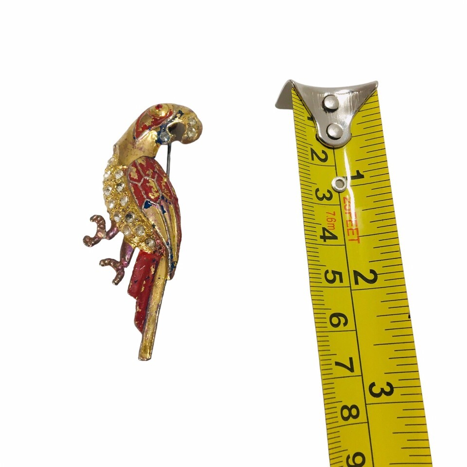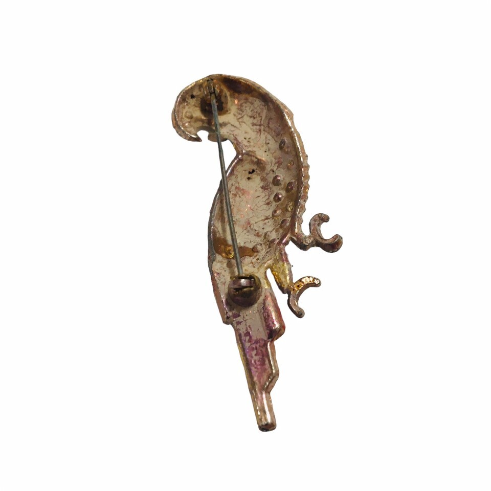 Vtg Brooch Pin Rhinestones Colorful Bird Parrot Costume Jewelry 1950's Hand Painted USA