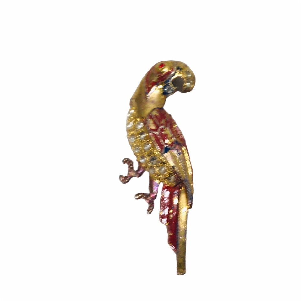 Vtg Brooch Pin Rhinestones Colorful Bird Parrot Costume Jewelry 50s Hand Painted