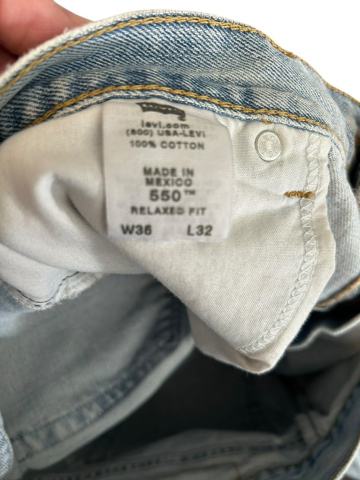 Vtg LEVIS 550 LIGHT WASH DENIM JEANS Actual 34x30 RELAXED FIT TAPERED Distressed
