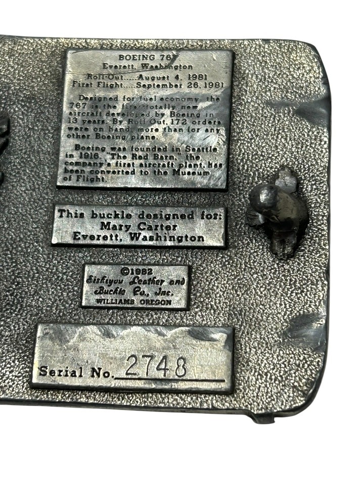 Boeing 767 Aircraft 80s 1982 Roll Out Belt Buckle "THE RED BARN" Siskiyou #192