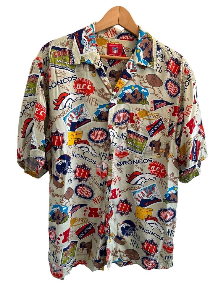 Vtg Denver Broncos ALL OVER HAWAIIAN PRINT Shirt Medium Rayon NFL 2000s Soft M