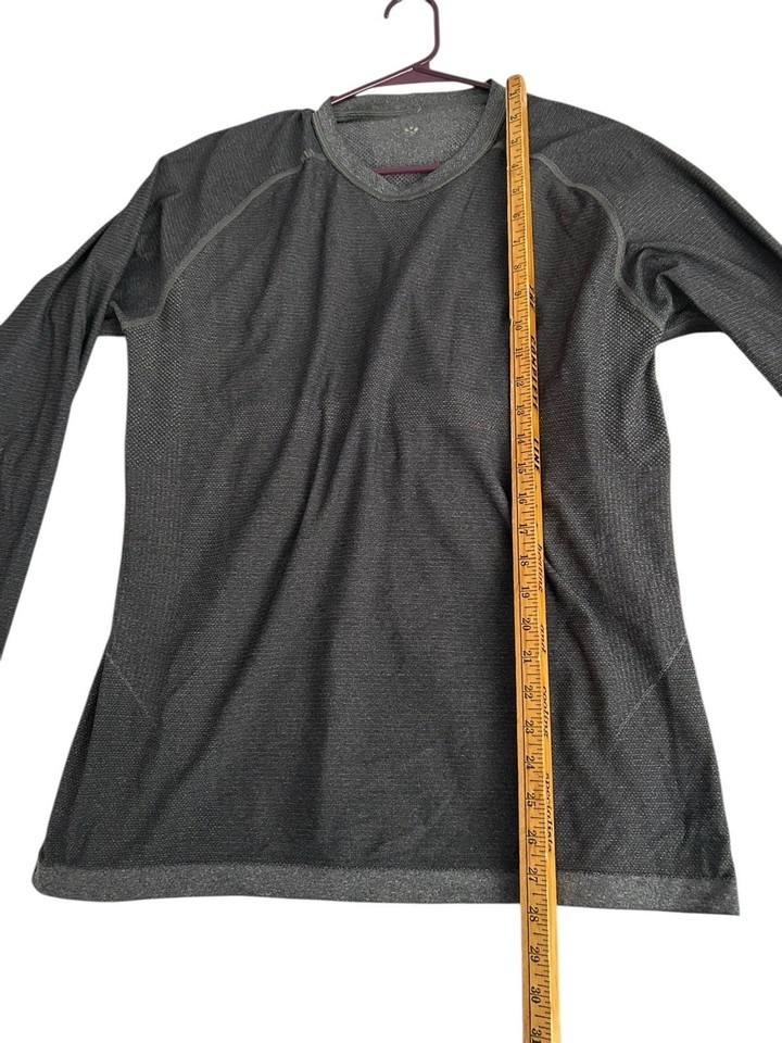 This is a Lululemon Men's Live In Practice long sleeve crewneck shirt in size XL. (Please refer to the measurements as there is no size tag that I can find). The shirt is thin striped blueish gray with a logo accent and is crafted from lightweight, stretchy fabric that is breathable. It features a pullover closure and a regular fit. Suitable for various occasions such as travel, activewear, and casual wear, this shirt is designed for all seasons and activities including gym training, cross-training, and running. Easy to care for with machine washable properties, this versatile shirt is a staple piece for the modern man's wardrobe.