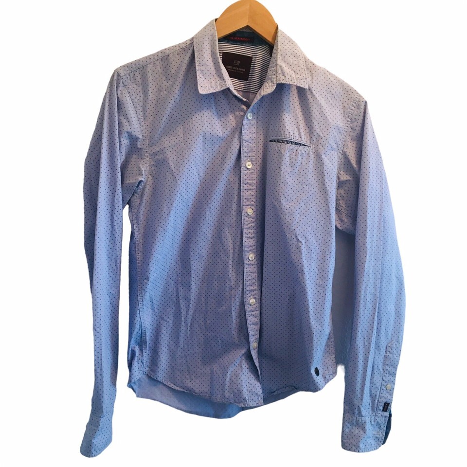 Scotch & Soda Mens (S) Button Down Polka Dot Shirt Light Blue Cotton
