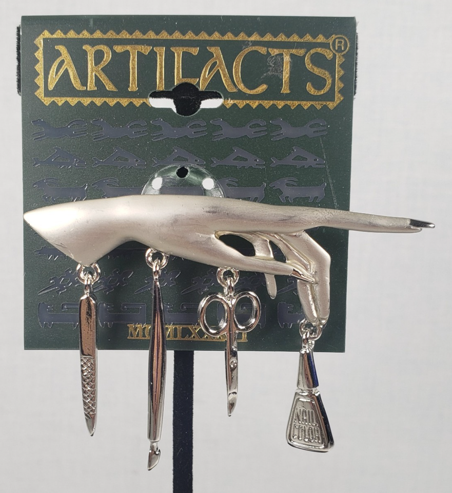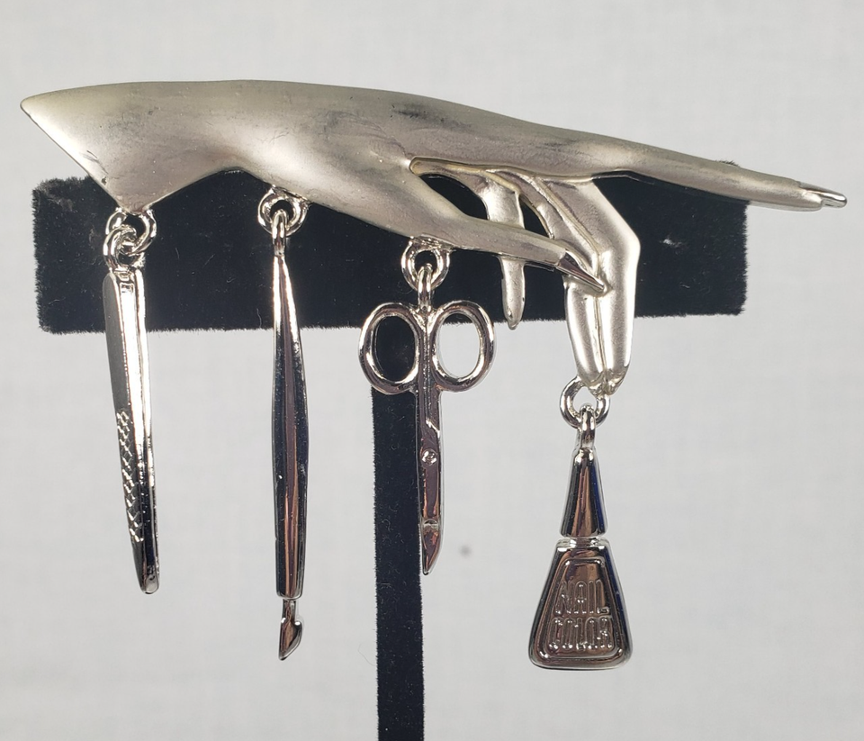 Vintage JJ Jonette ARTIFACTS Silver Tone 1986 Manicuri Nail Technician Brooch