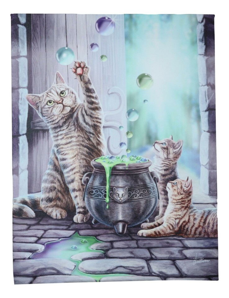 Witch Hubble Hubble Cat And Kittens Magic Cauldron Wood Framed Canvas Wall Decor