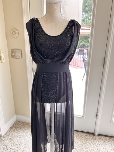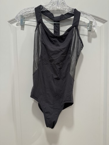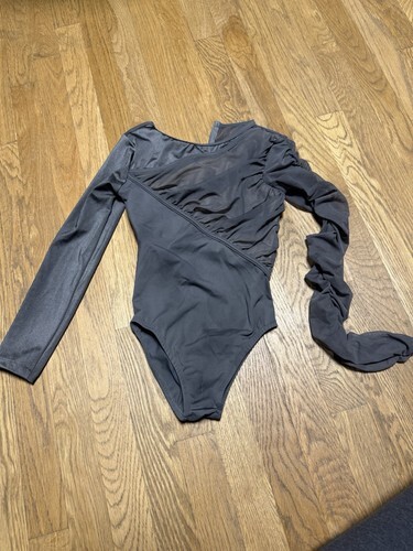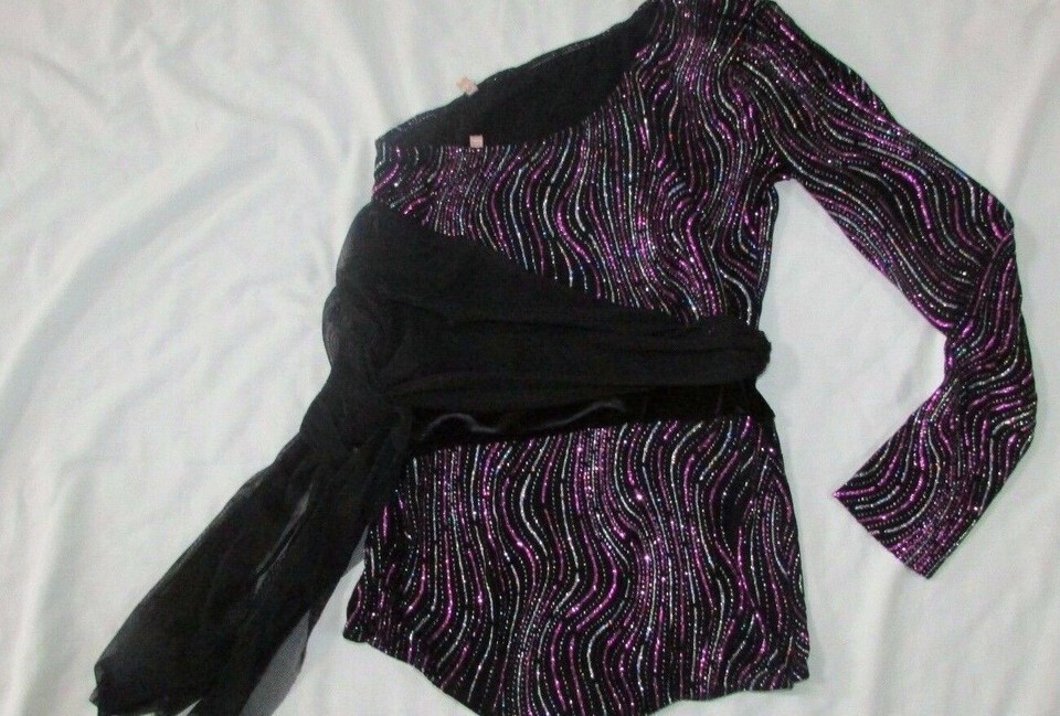 Women's Medium dance skating leotard costume 1 long sleeve black pink glitter
