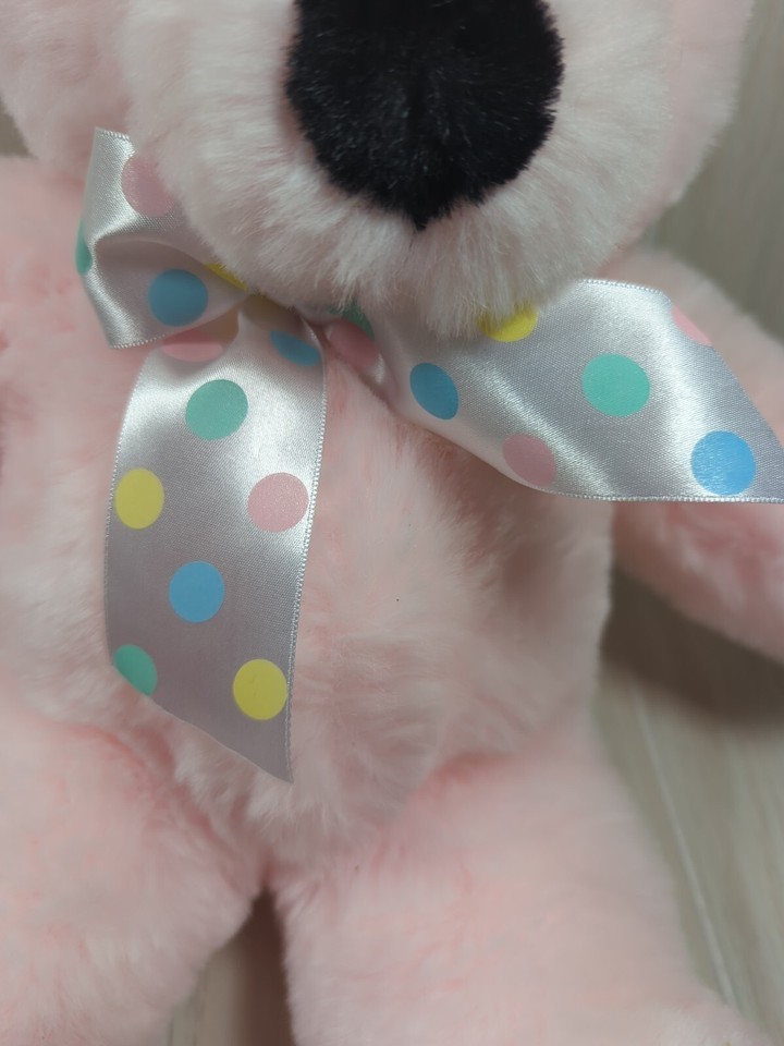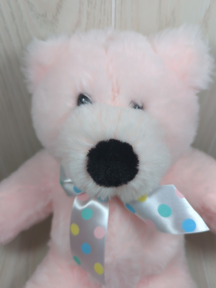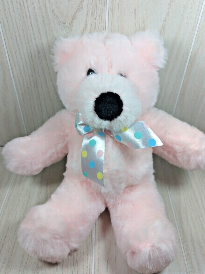 America Wego Fiesta 1991 vintage pink plush teddy bear polka dot ribbon bow