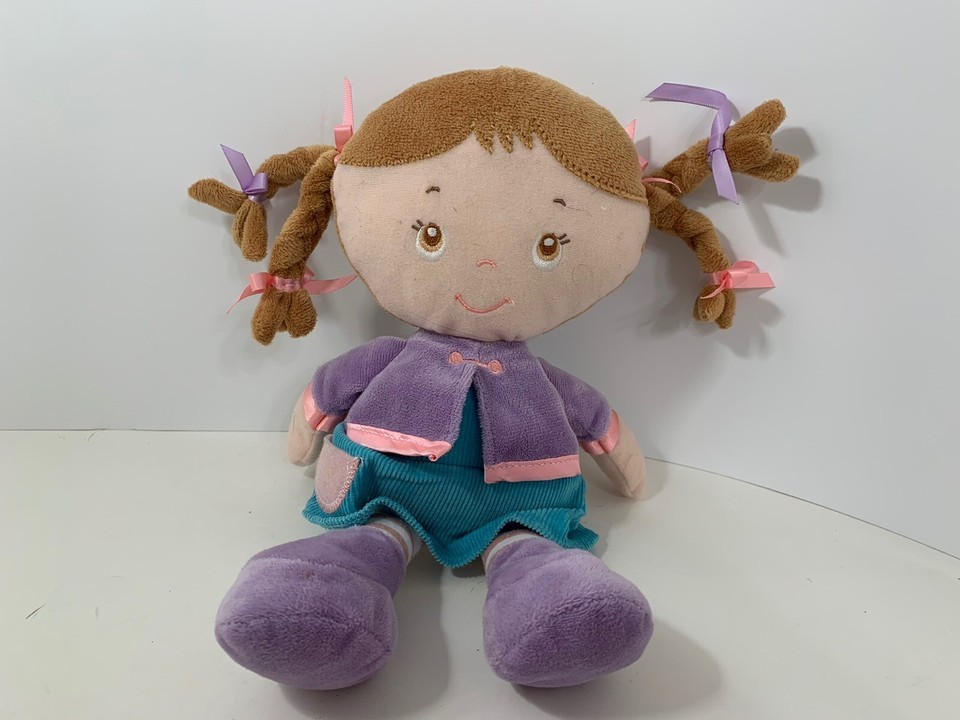 Kids Preferred 2012 plush rag doll brunette purple blue dress brown hair braids