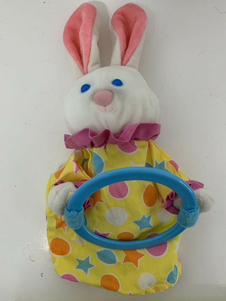 Avon vintage 1989 Easter bunny rabbit hand puppet yellow blue pink polka dots