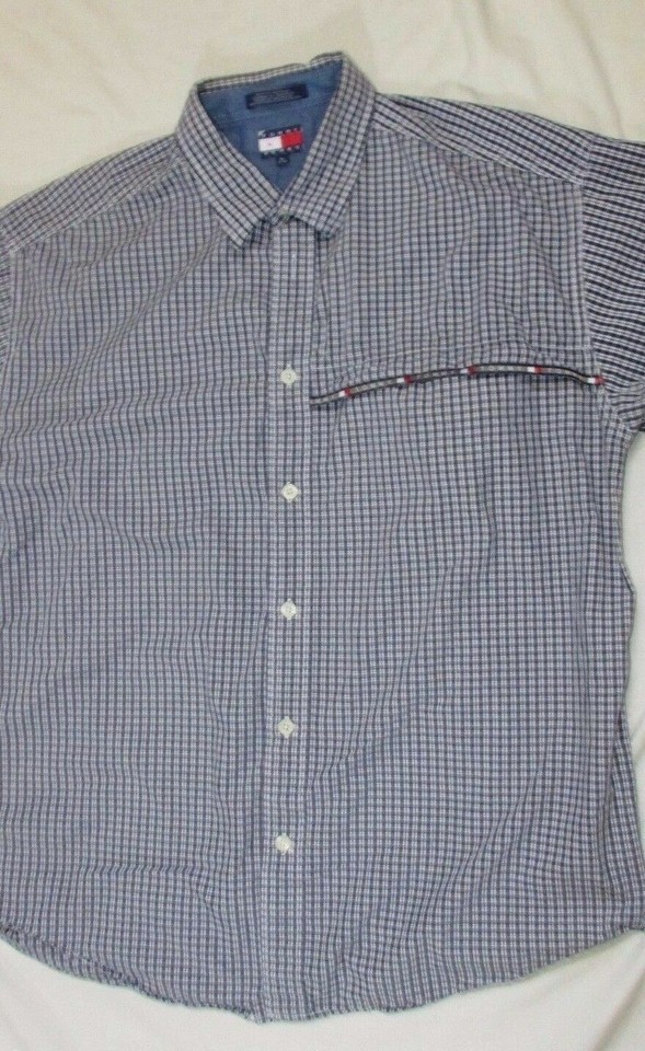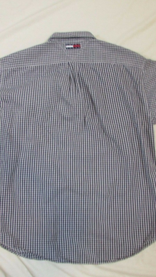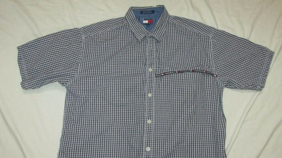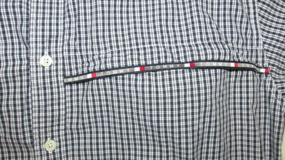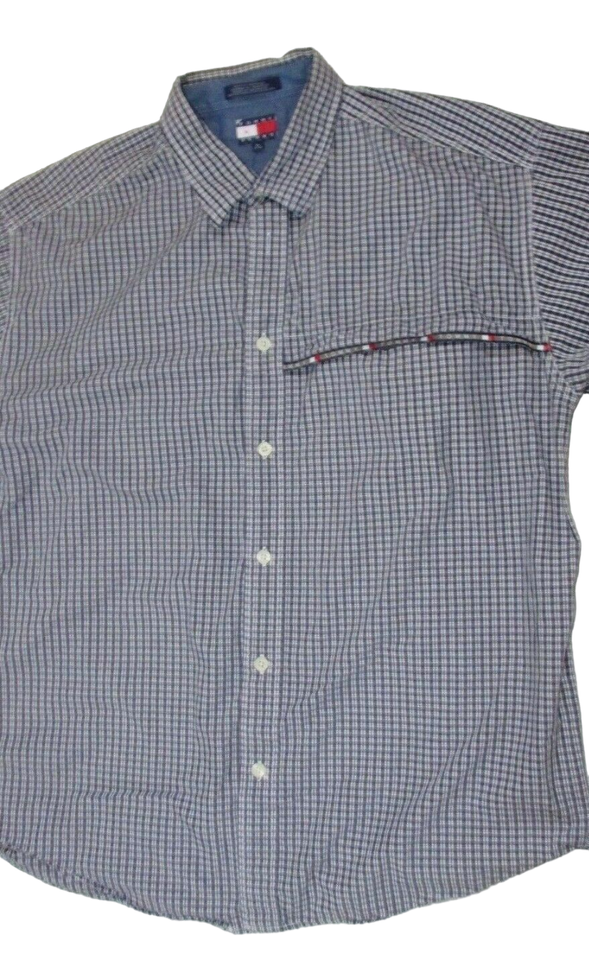 Mens XL vintage Tommy Hilfiger Blue white plaid check button down shirt