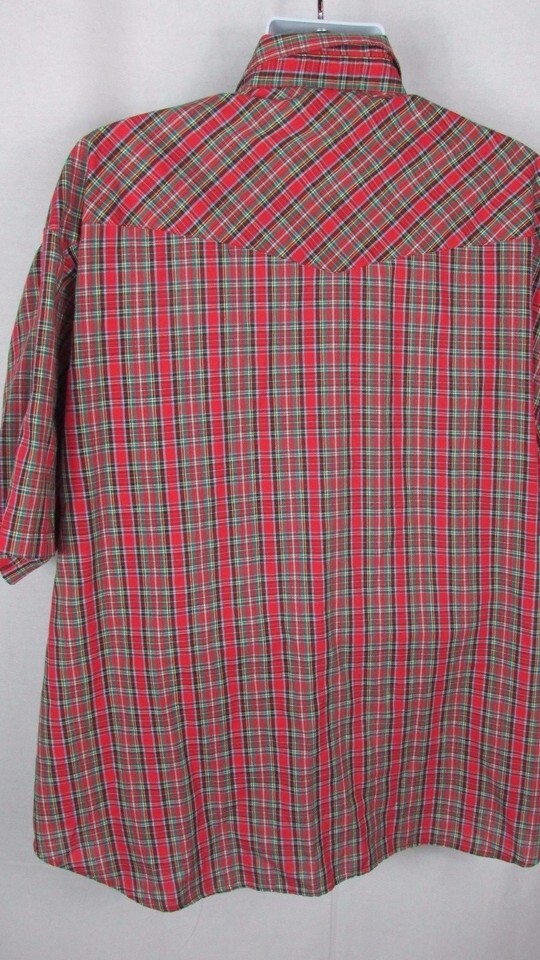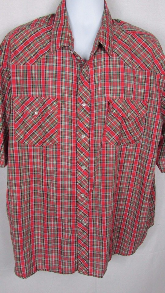 Men's Southern Classics Shirt Red plaid Short Sleeve Pearl snap Buttons 2XL