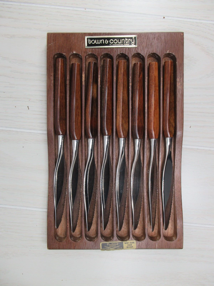 Town & Country MCM Washington Forge 8 Fleetwood Handle Steak knife set Wood Tray