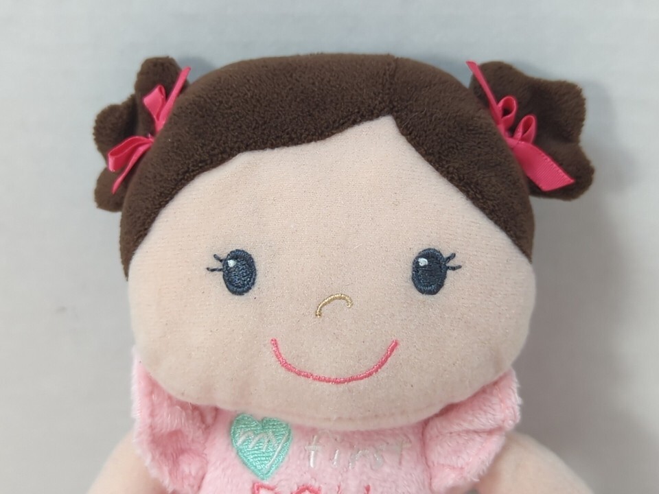 Garanimals My first doll Plush brown hair pink dress green heart circles bows