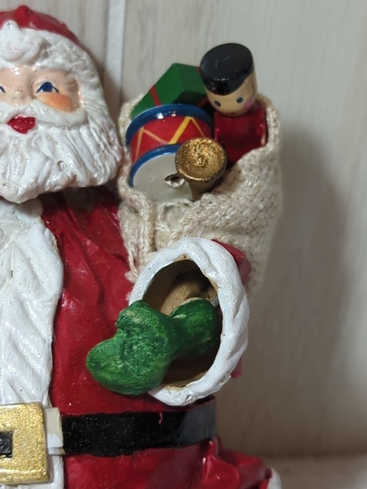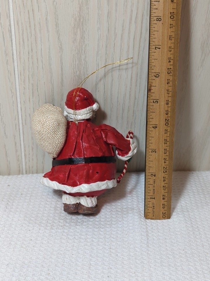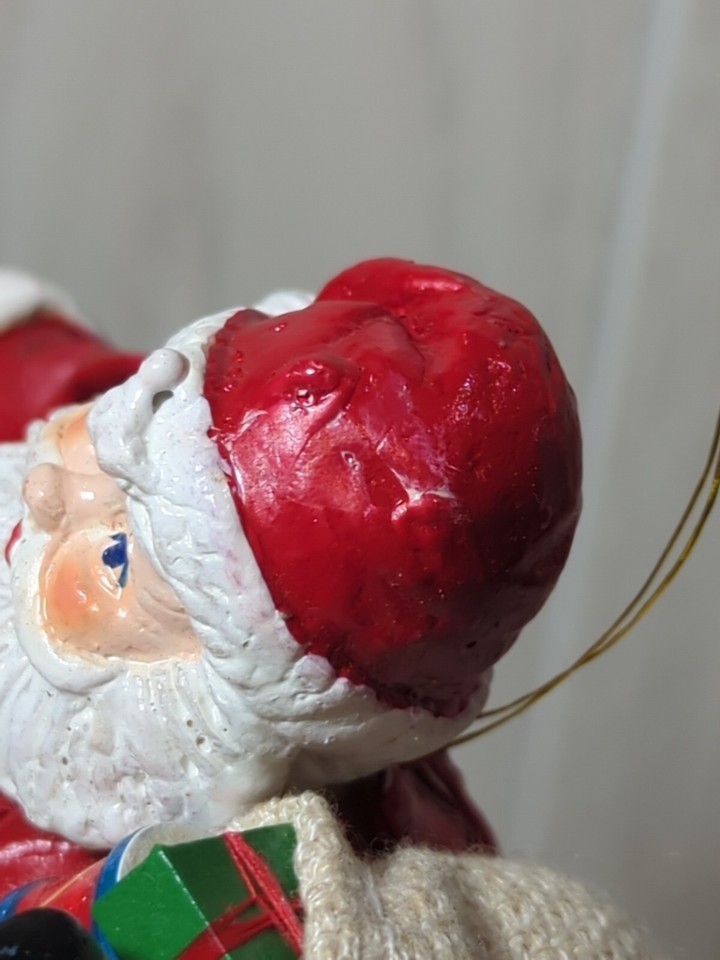 Santa Claus vintage Paper mache Christmas Tree Ornament burlap sack wood toys