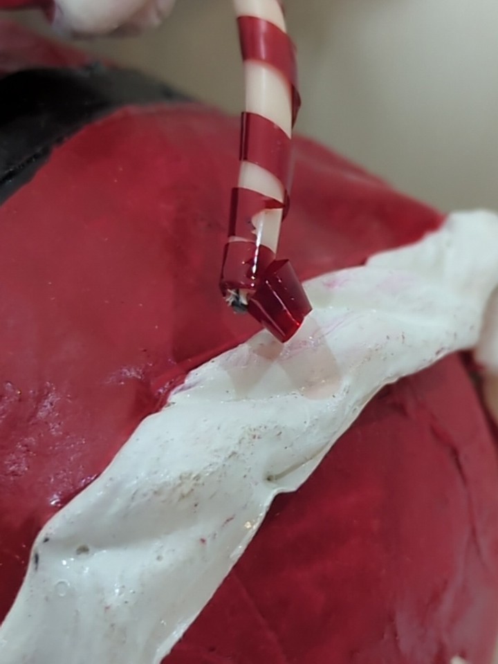 -Candy cane is plastic and has a small section unraveling at the bottom