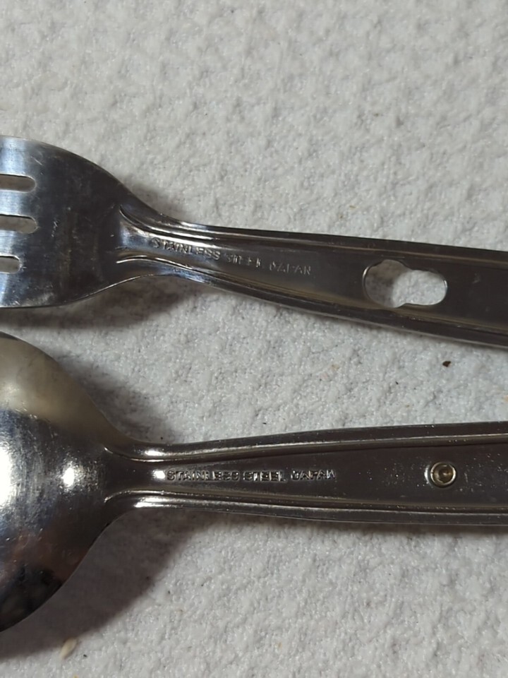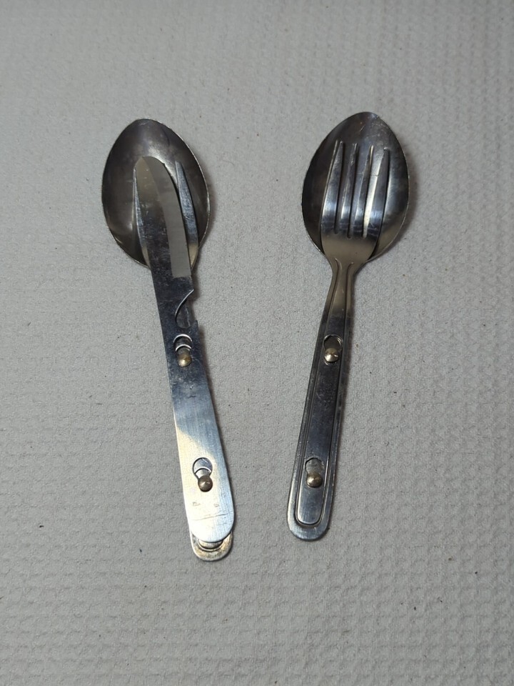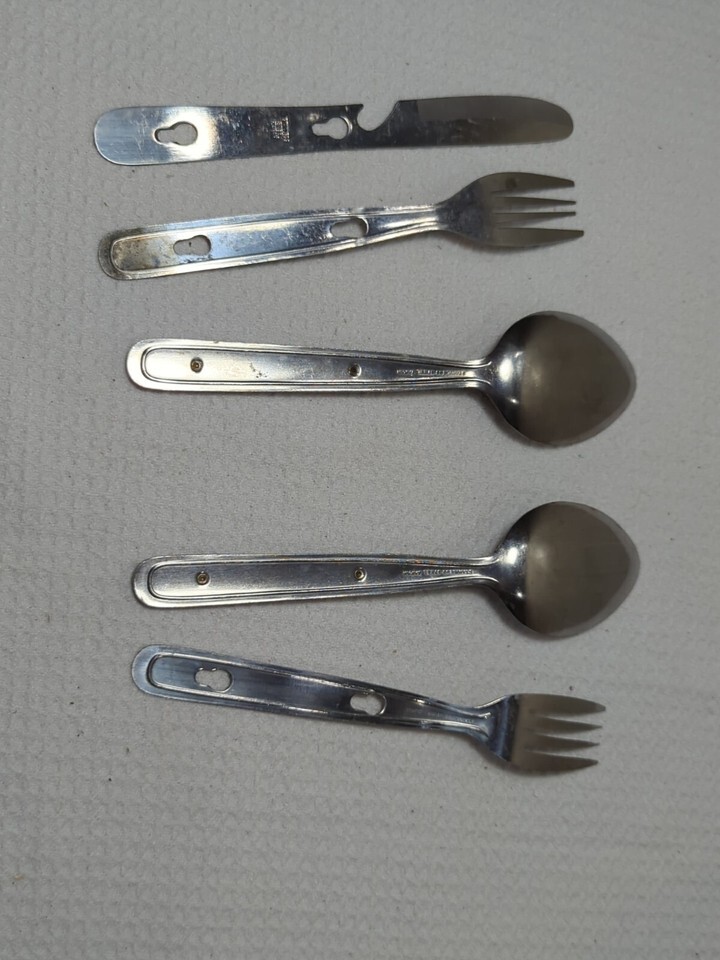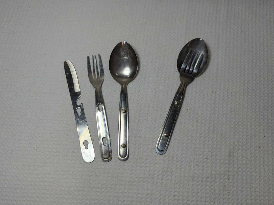 Vintage camping scout utensils 1 knife 2 fork 2 spoon Stainless Japan nesting