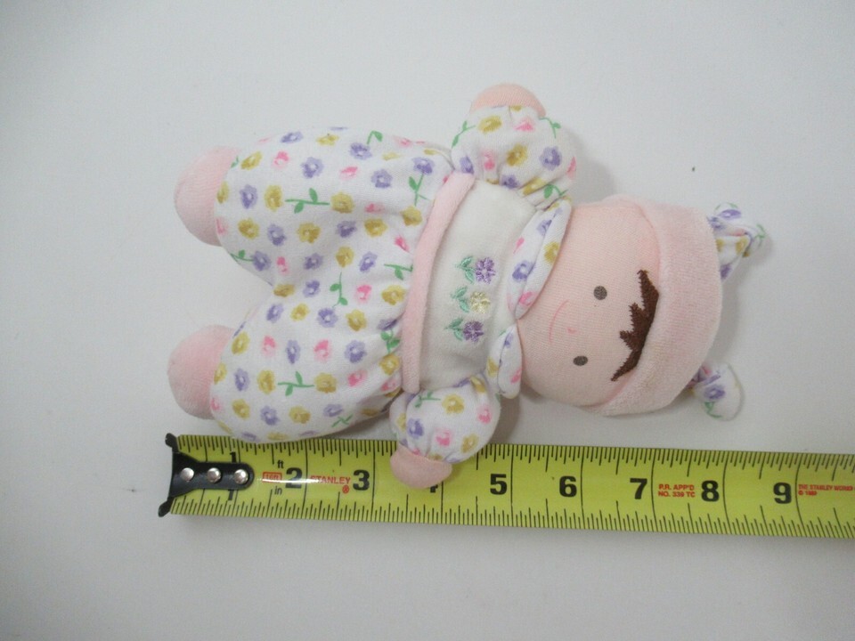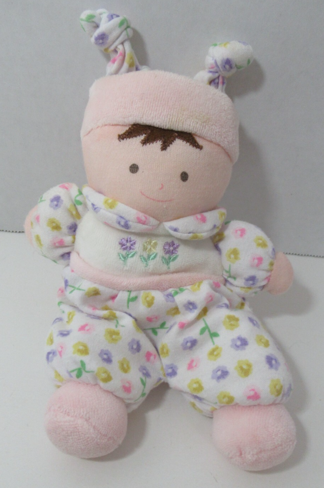 Carters plush baby doll white outfit pink purple flowers brunette brown hair hat