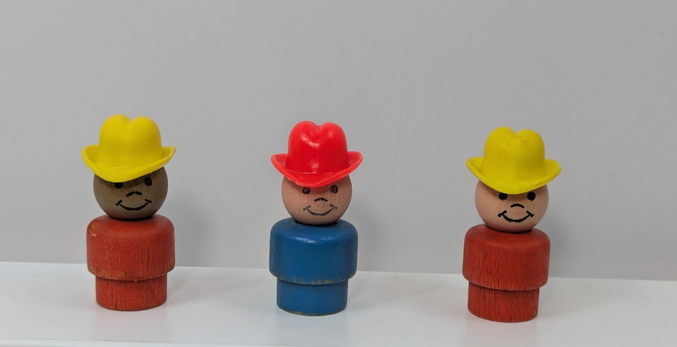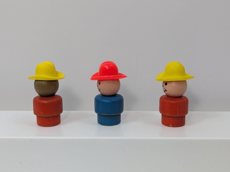 Fisher-Price Little People vintage farmer boys lot 3 wooden blue red yellow AA