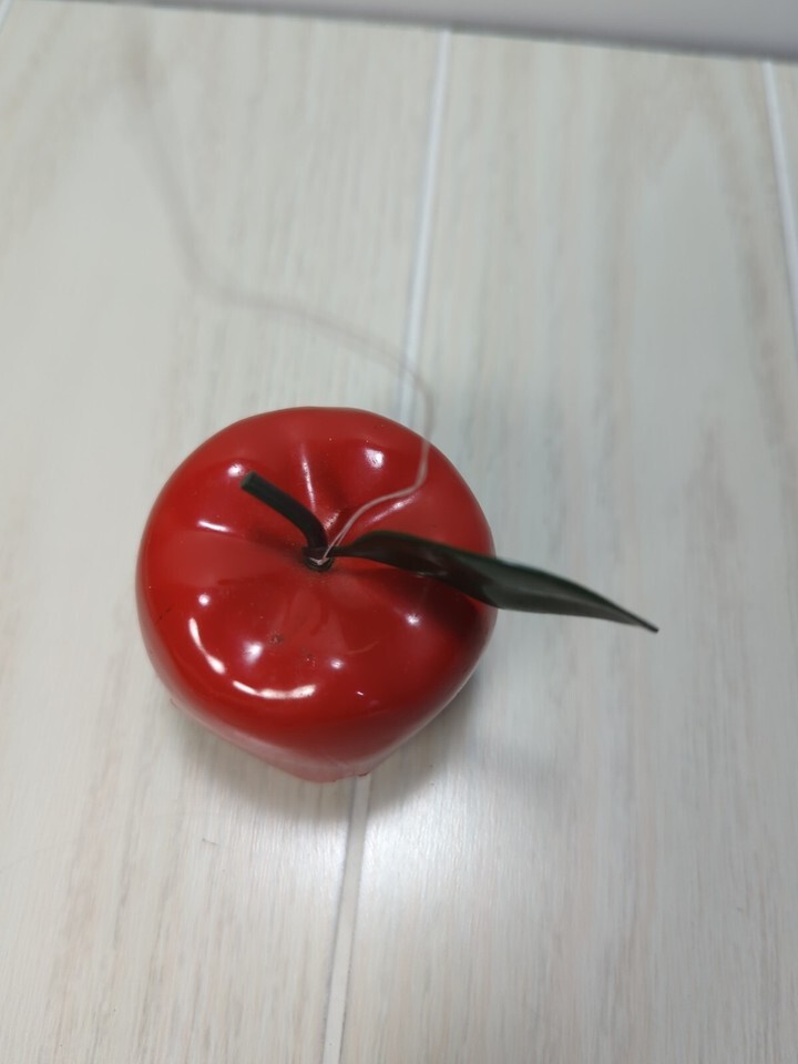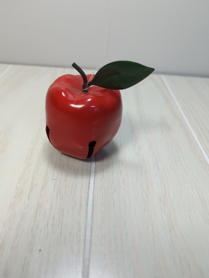 Red delicious apple jingle bell Christmas tree ornament green leaf