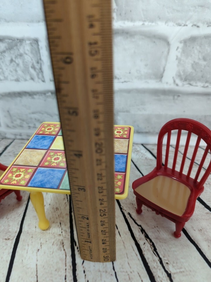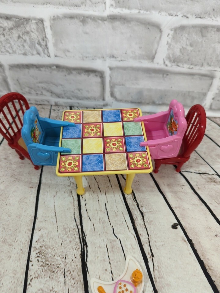 Fisher-Price Loving Family dollhouse yellow kitchen table red chairs baby seats