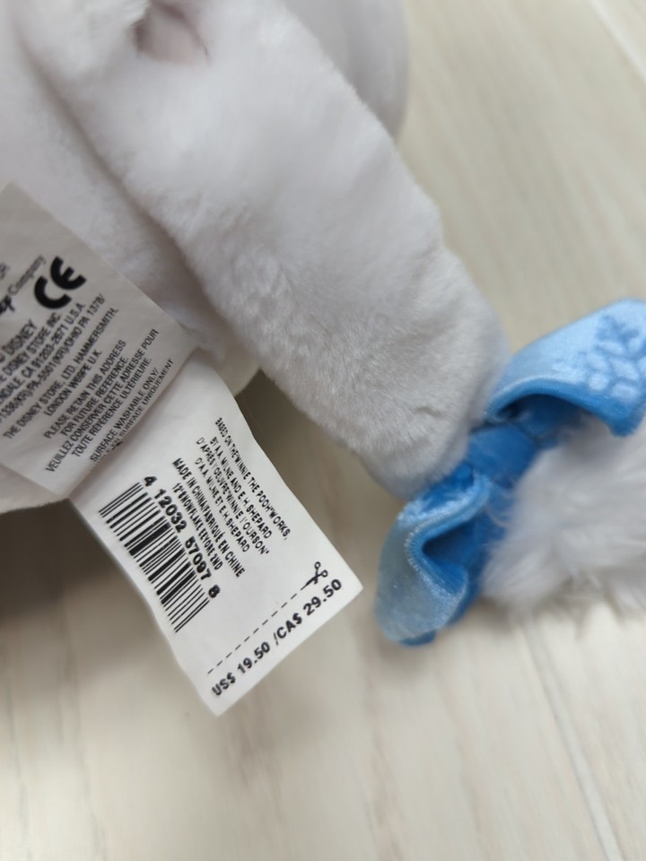 Disney Store Winnie the Pooh Plush White Blue hat scarf Winter Eeyore