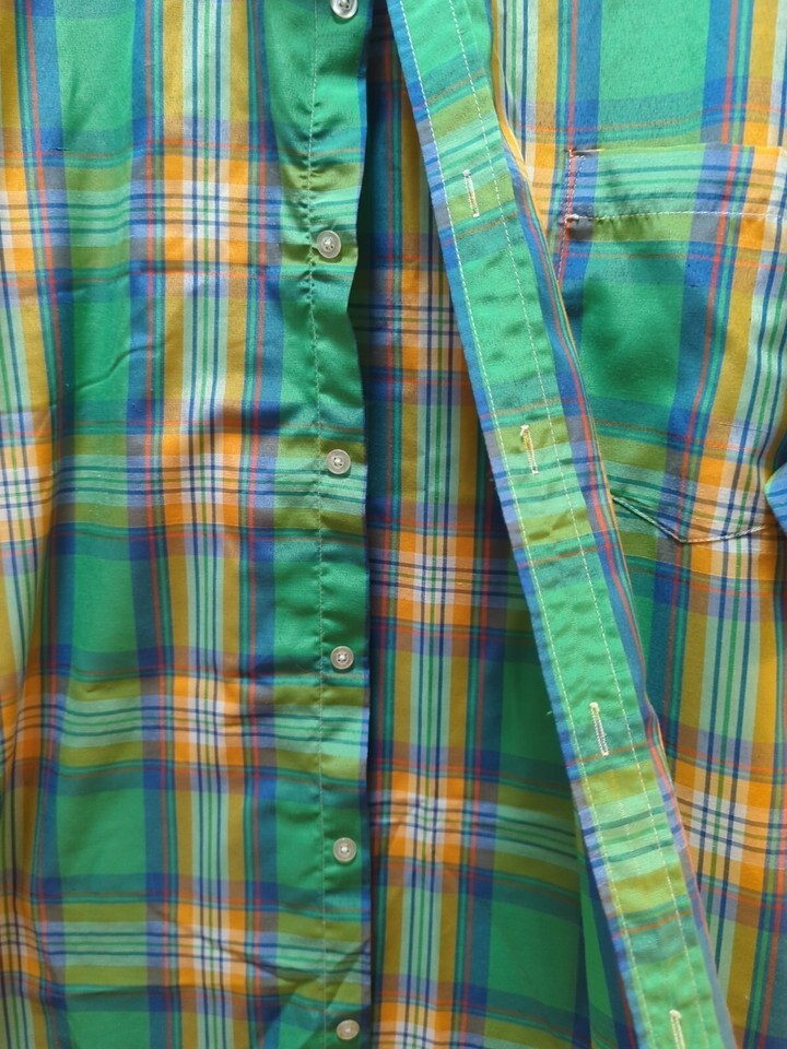 Alberto Cardinali XL men's green orange blue plaid button front shirt