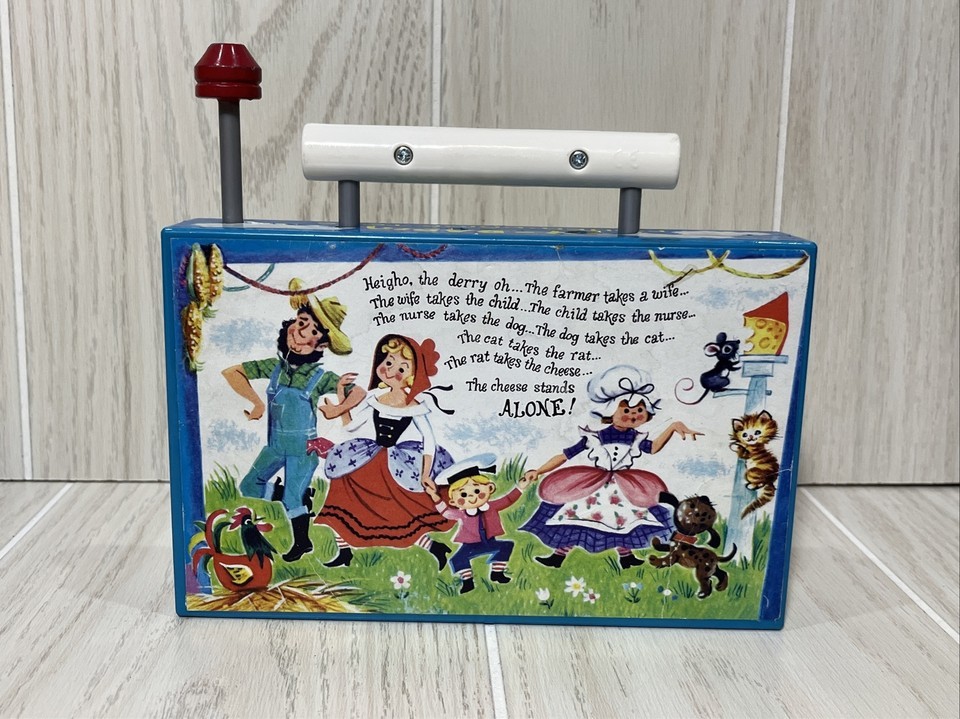 Fisher-Price Retro TV RADIO Preschool Wind Up Musical Toy Farmer in Dell FP 1703