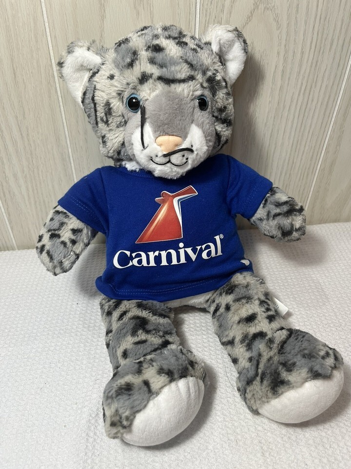 Build A Bear Gray White Plush Snow Leopard Wearing Blue Carnival Cruise Shirt