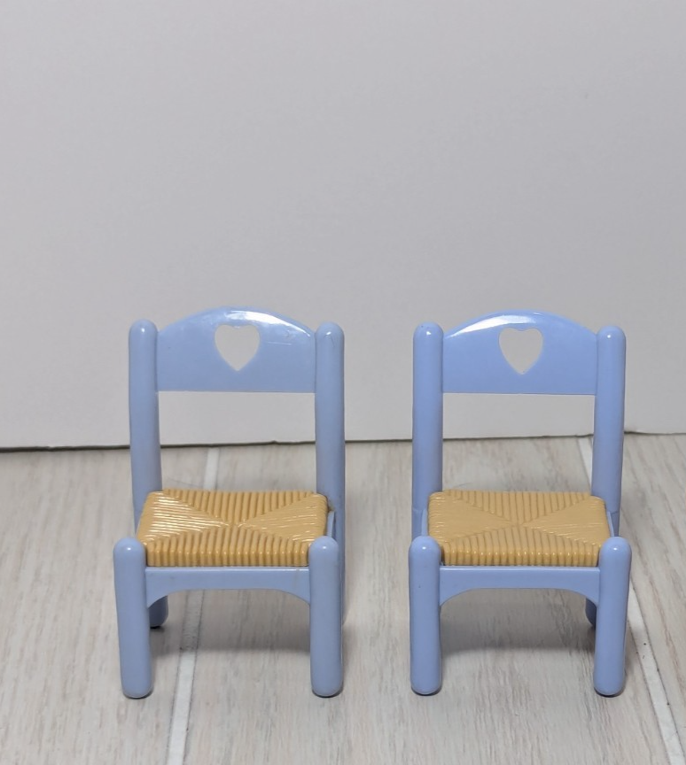 Fisher-Price Loving Family Dollhouse Kitchen Chairs Blue tan brown wicker 1993