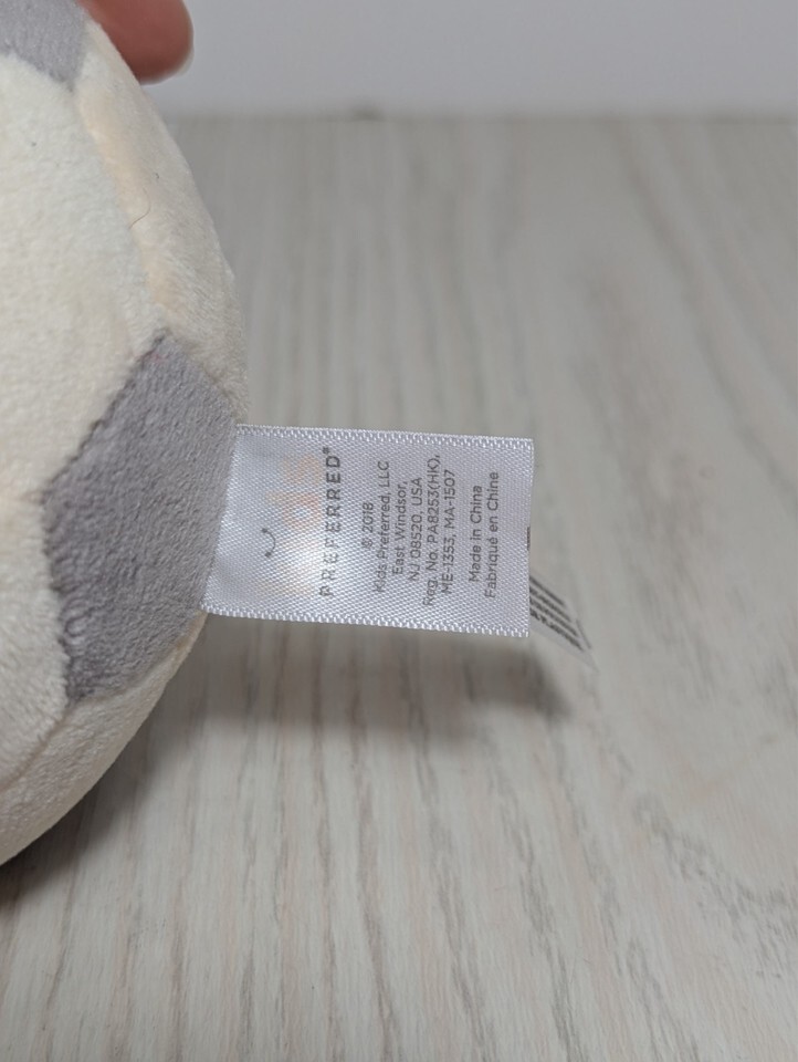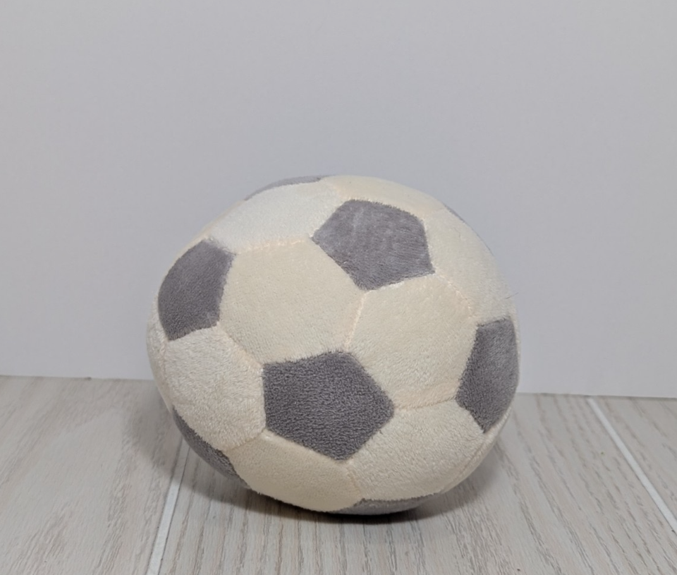 Kids preferred small plush soccer ball rattle gray white