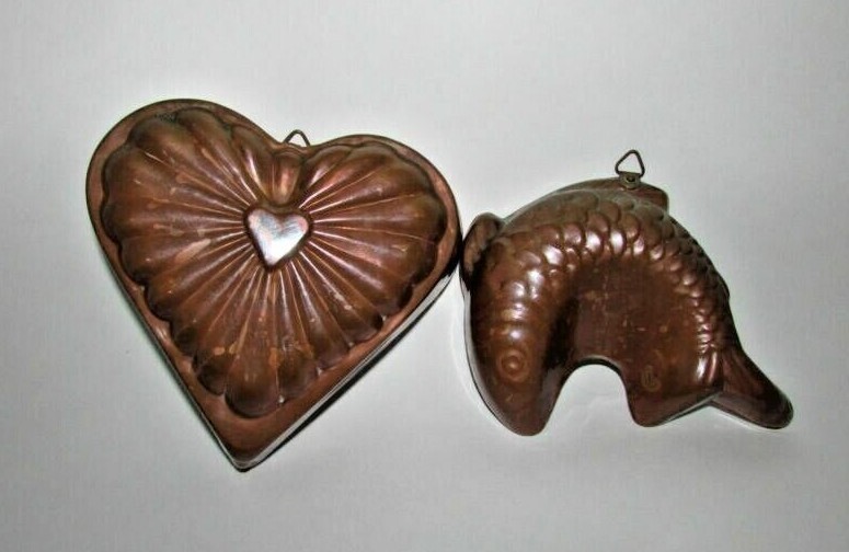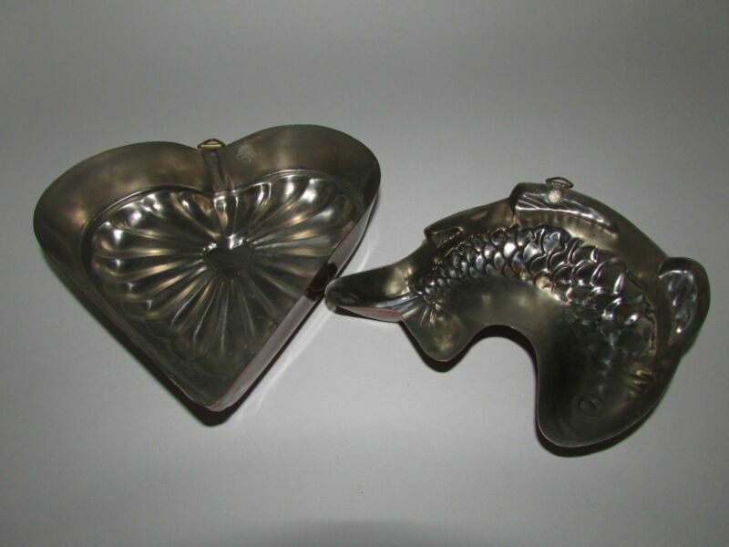 Copper tin lined Fish Heart Jello Mold Lot and similar items