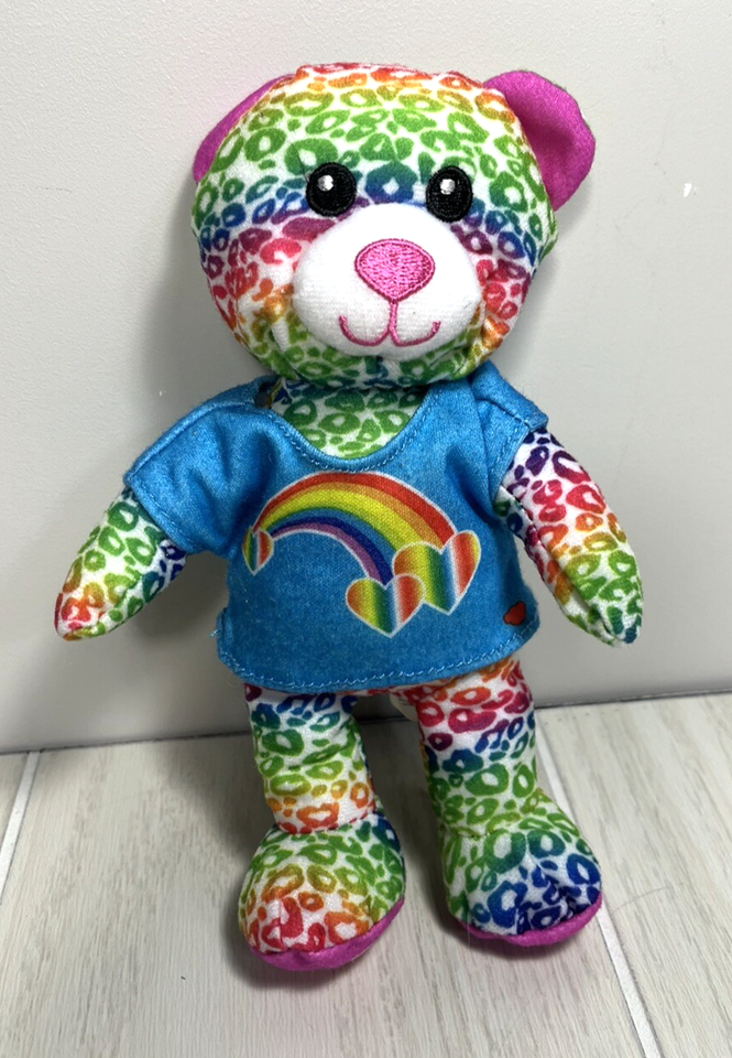 Build-a-Bear Workshop mini 7” plush teddy leopard cheetah print rainbow t-shirt