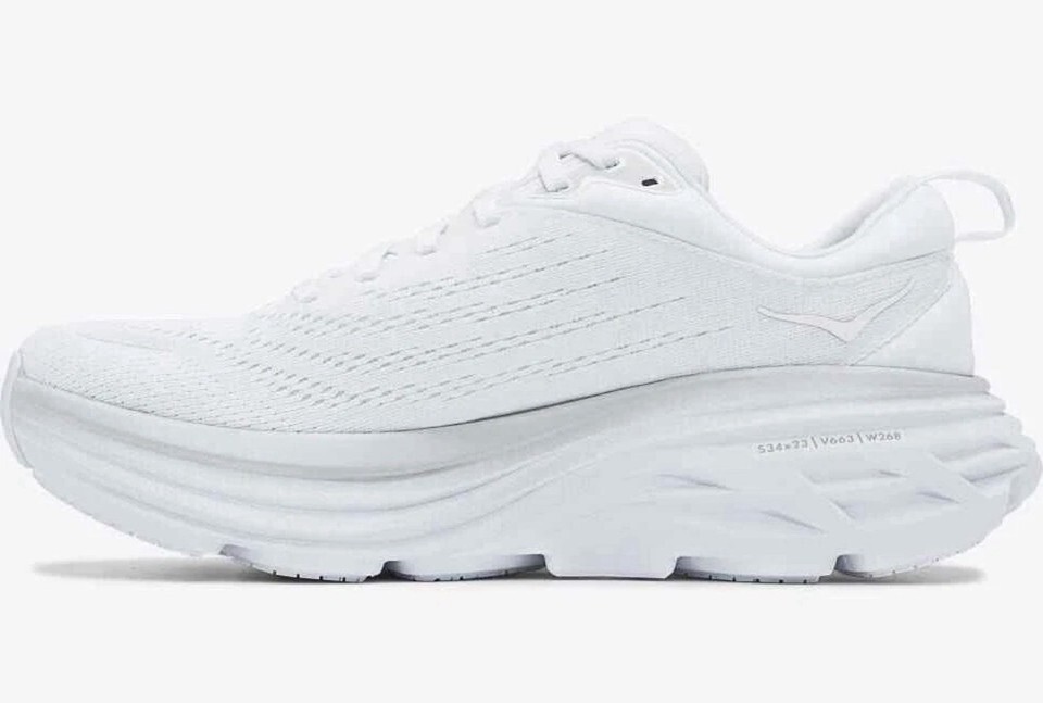Hoka Bondi 8 Womens Running Shoes All Triple White 1127952 Size 12B. Shipped with USPS Ground Advantage.