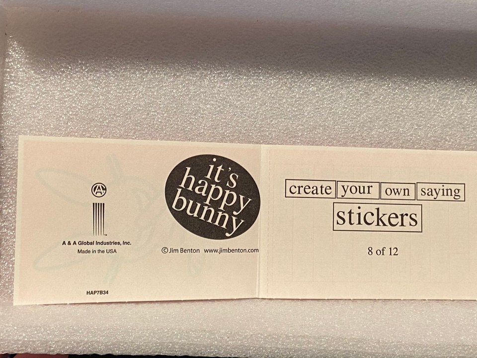 The It's Happy Bunny sticker is #8 of 12 and is new and the other stickers are sayings for the sticker You add the saying from the list shown